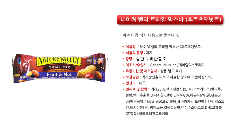 ◈네이처밸리 트레일 믹스바 Fruit & Nut