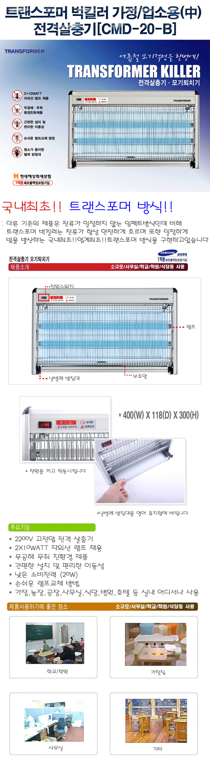 트랜스포머 벅킬러 가정/업소용(中) 전격살충기[CMD-20-B]