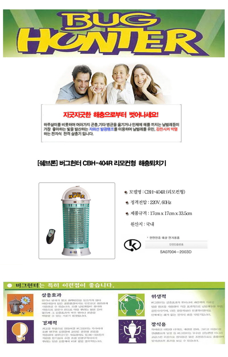 날벌레/모기 박멸! OK! 초절전형 리모콘 버그헌터 전격살충기[CBH-404R]