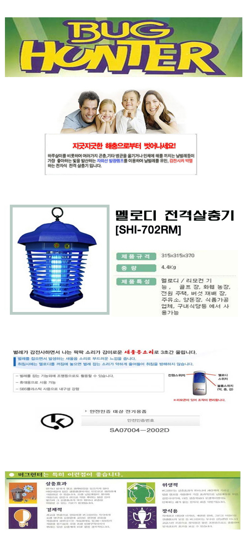 버그헌터 날벌레/해충퇴치 멜로디 리모콘 전격살충기[SHI-702RM]