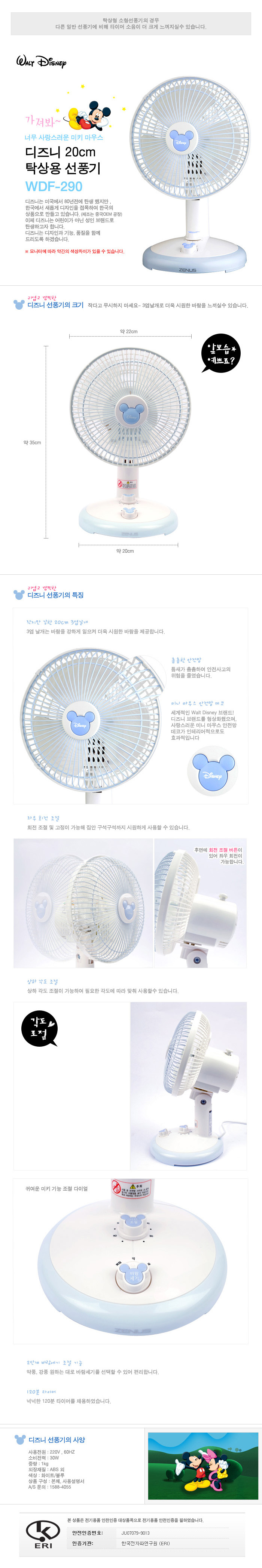 디즈니 캐릭터 20cm(화이트블루) 120분 타이머 좌우회전 탁상형 선풍기 [WDF-290]