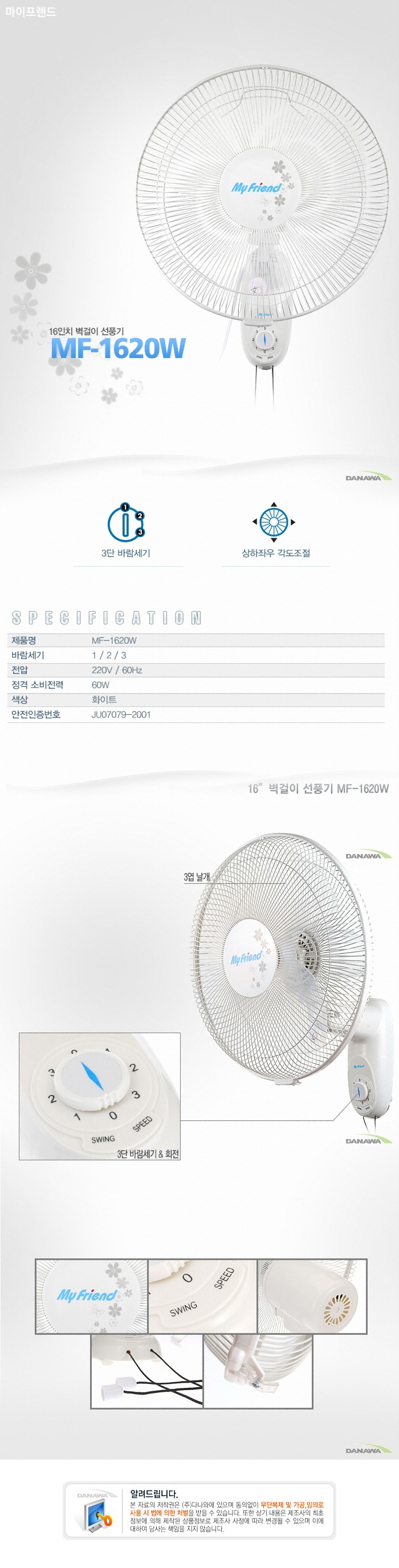 마이프랜드 16형 40cm 거실/업소용 벽걸이 선풍기[MF-1620W]