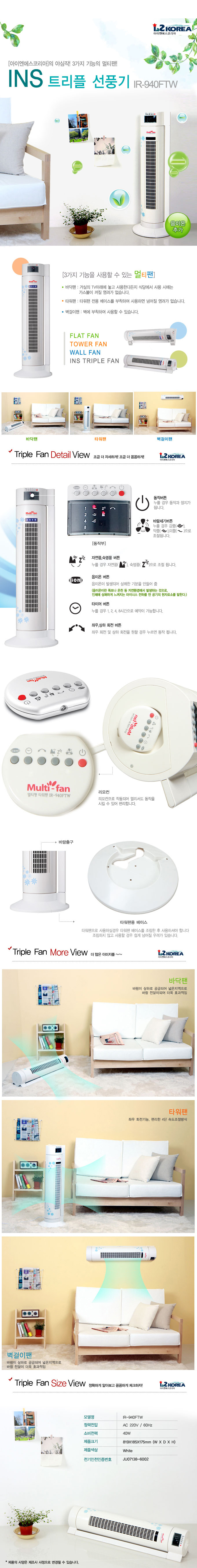 [바닥형,벽걸이형,스탠드형 3Way 사용! 국내처음도입방식]아이엔에스 신개념 멀티형 타워팬 리모콘 타이머 선풍기[IR-940FTW]
