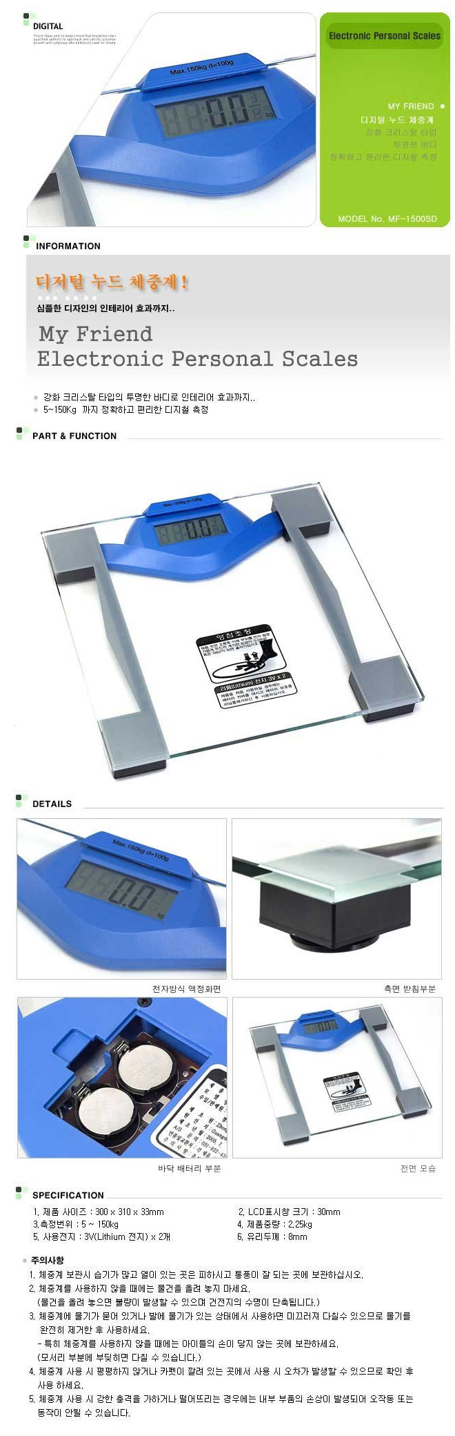마이프랜드 정확한 디지털 누드 체중계(사각) [MF-1500SD]