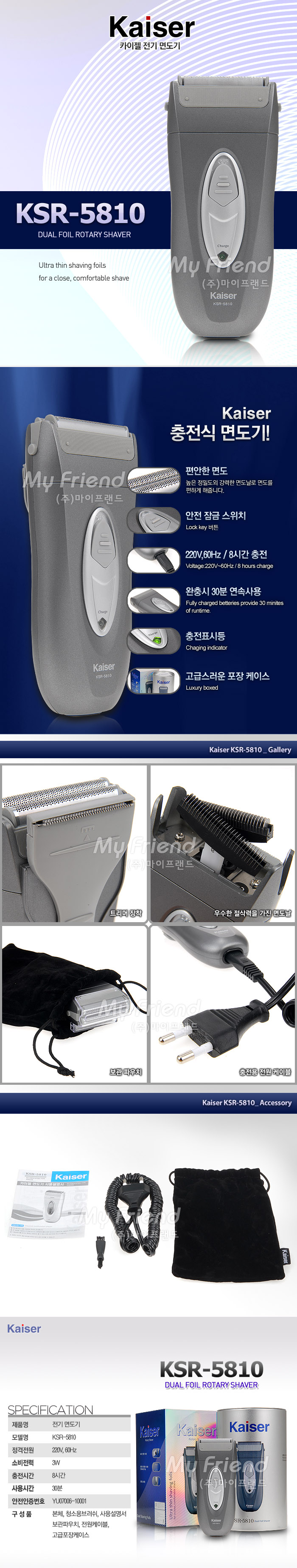 [피부와 턱선에 최적의 각도로 맞닿아!]카이젤 저진동 인체공학 면도기[KSR-5810]