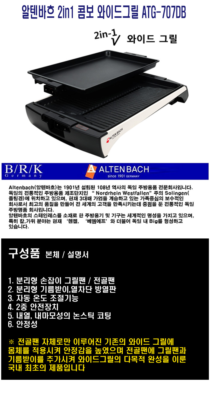 名品 알텐바흐 2in1 콤보 블랙&실버 프리미엄 분리형 와이드그릴[ATG-707DB]