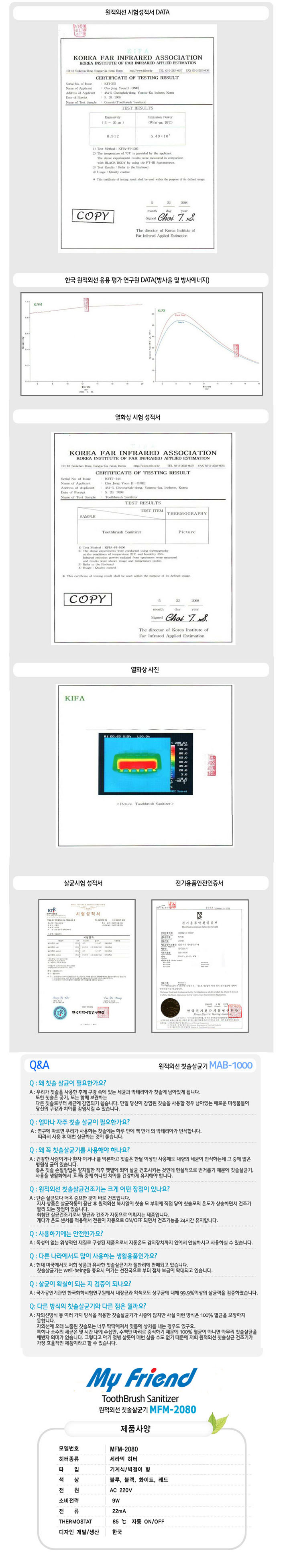 [특허기술로 소독과 건조를 한번에~!]마이프랜드 원적외선 99.99% 칫솔 살균기[MFM-2080]