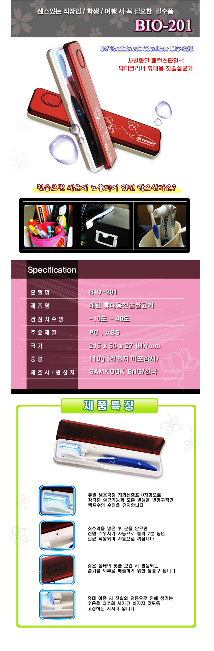 ★1+1 기획★Dr.名品 닥터크리너 스타일리쉬 와인 구강살균시스템 휴대용 위생관리 칫솔살균기[Bio-201]