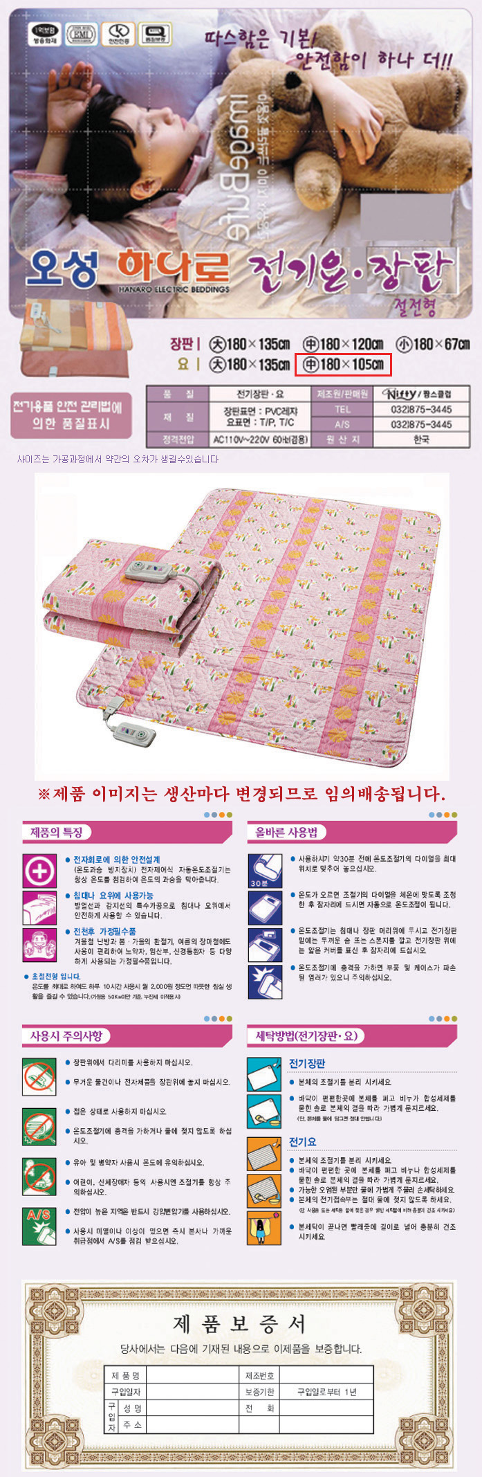 [해외에서도 사용편리한]따뜻한 오성 Hanaro 고급 전기요 1~2인용(中)