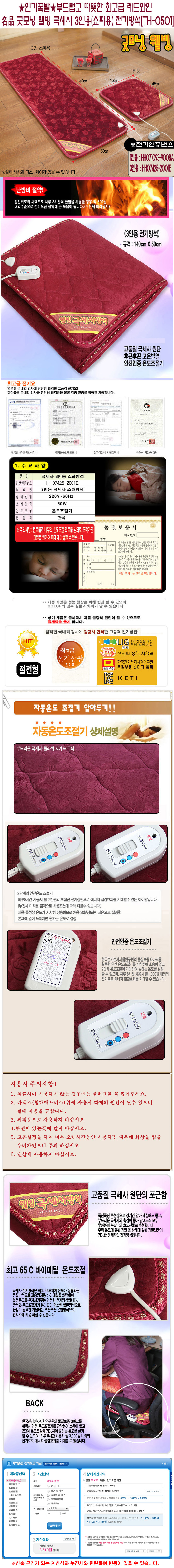 부드럽고 따뜻한 최고급 레드와인 名品 굿모닝 웰빙 극세사 3인용(쇼파용) 전기방석[TH-0501]