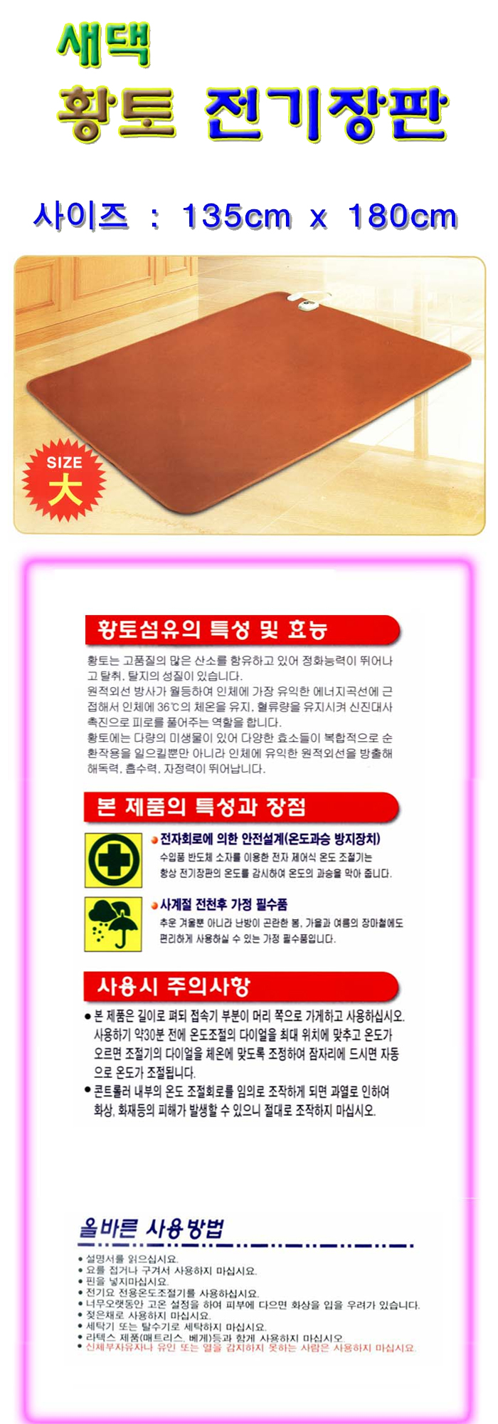 대원새댁 110V~220V(해외에서 사용편리)황토 전기장판 3인용(大)[SY-730SA]
