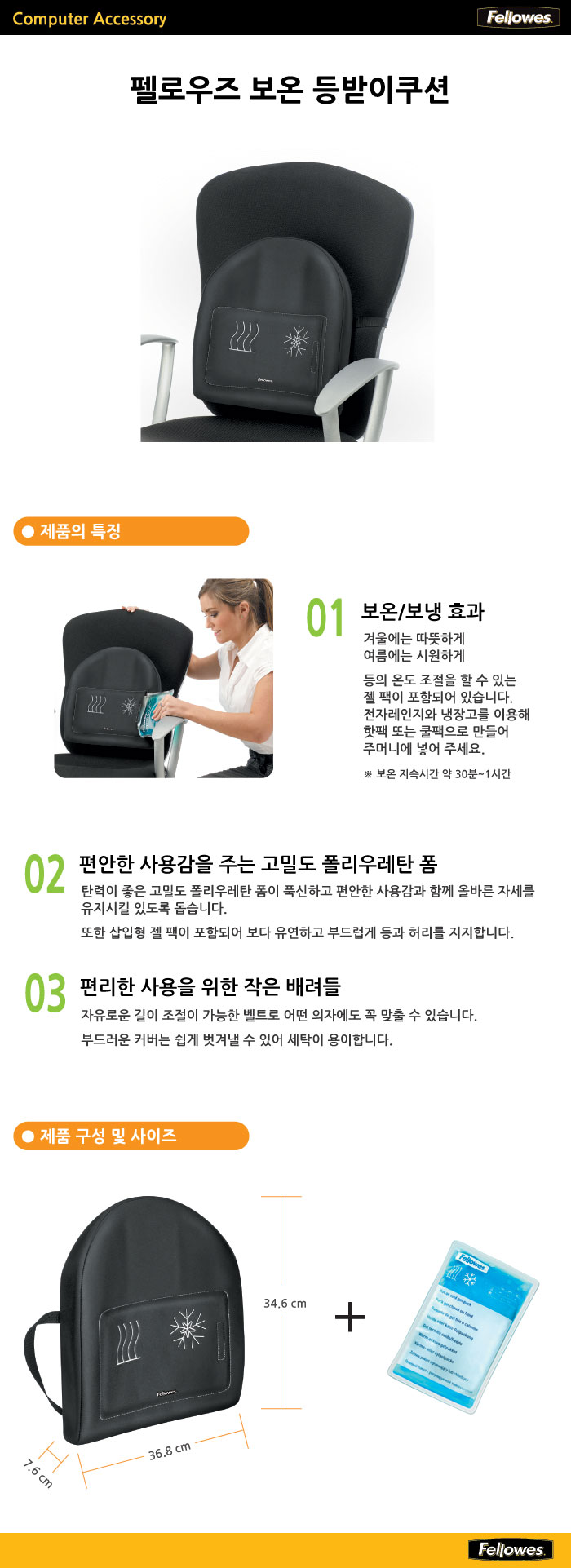 펠로우즈 OfficeSuit 보온등받이쿠션 일반(346*368*76mm) 91900-01