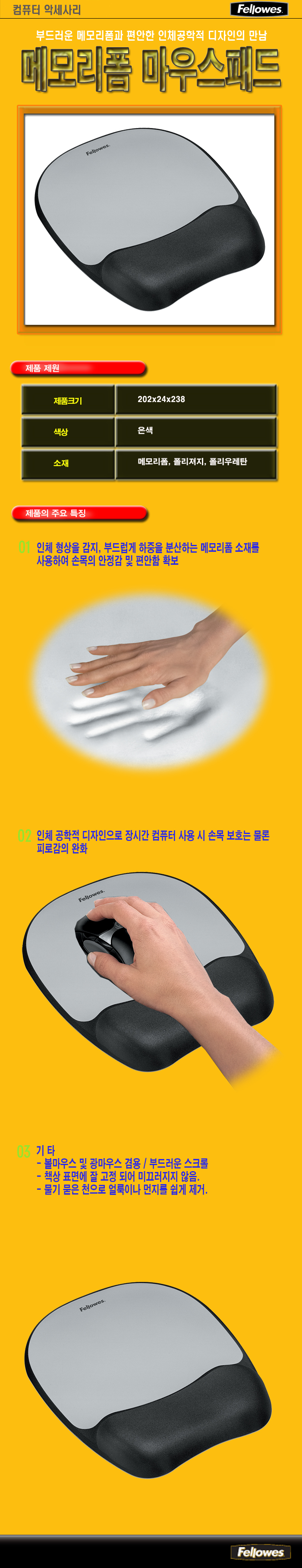 펠로우즈 메모리폼 마우스패드(202*238*24mm) 실버 91758