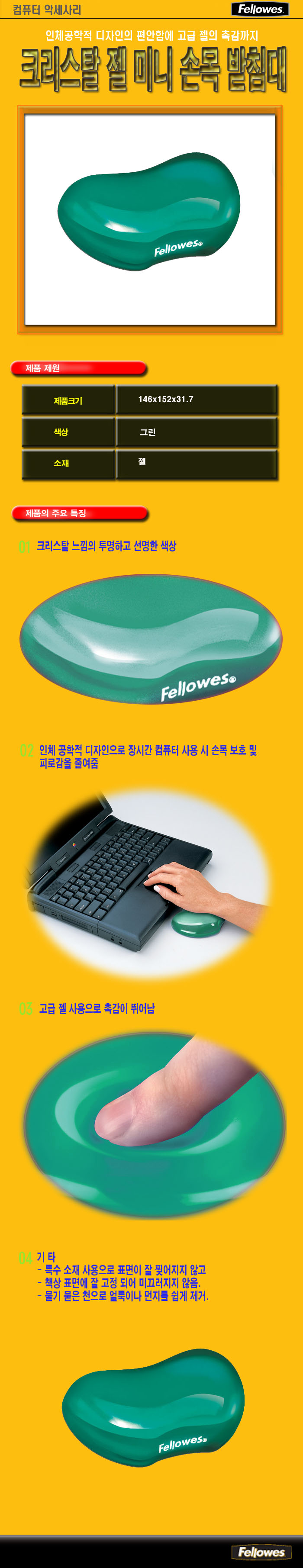펠로우즈 크리스탈 미니젤손목받침대(152*146*31.7) 그린 91377
