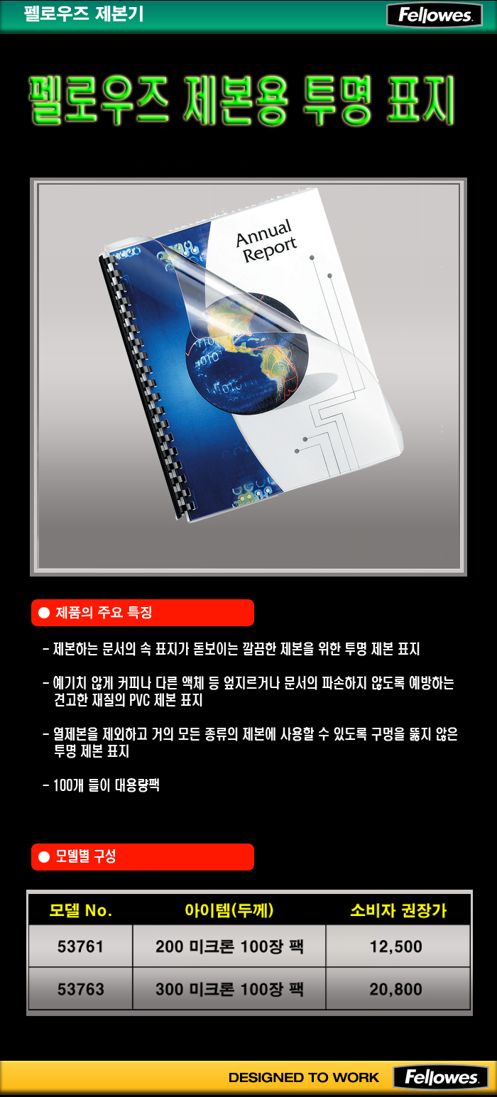 펠로우즈 PVC제본표지 A4(투명) 300mic(100매)