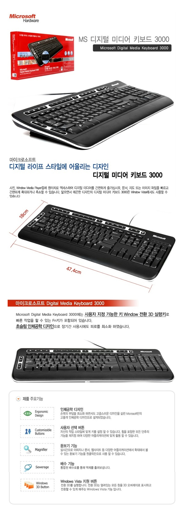 [마이크로소프트] 디지털 미디어 키보드 3000(USB)