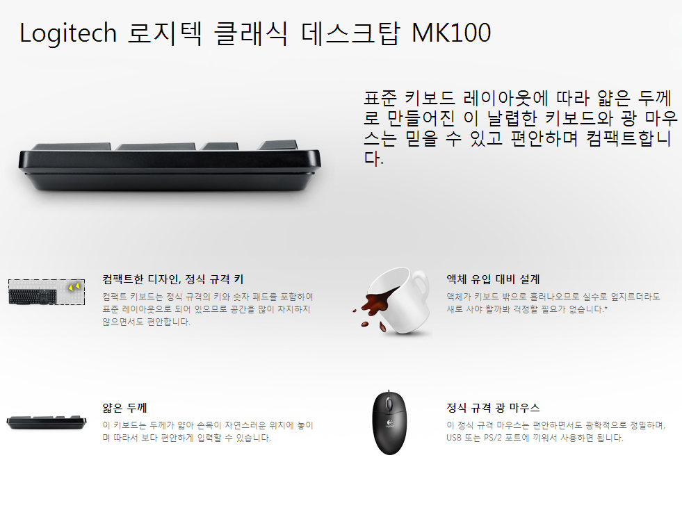 [로지텍] MK100 클래식 데스크탑 유선패키지(키보드PS/2+마우스콤보)