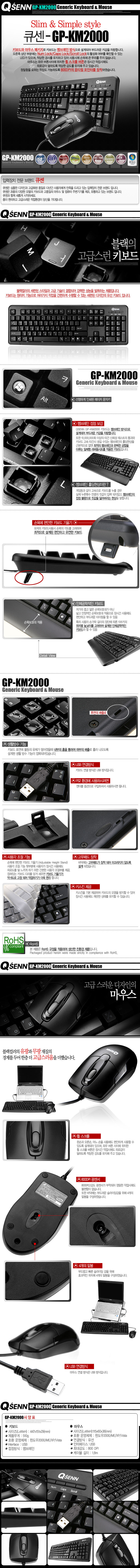 [지피전자] QSENN GP-KM2000 블랙 유선패키지(키보드USB+마우스USB)