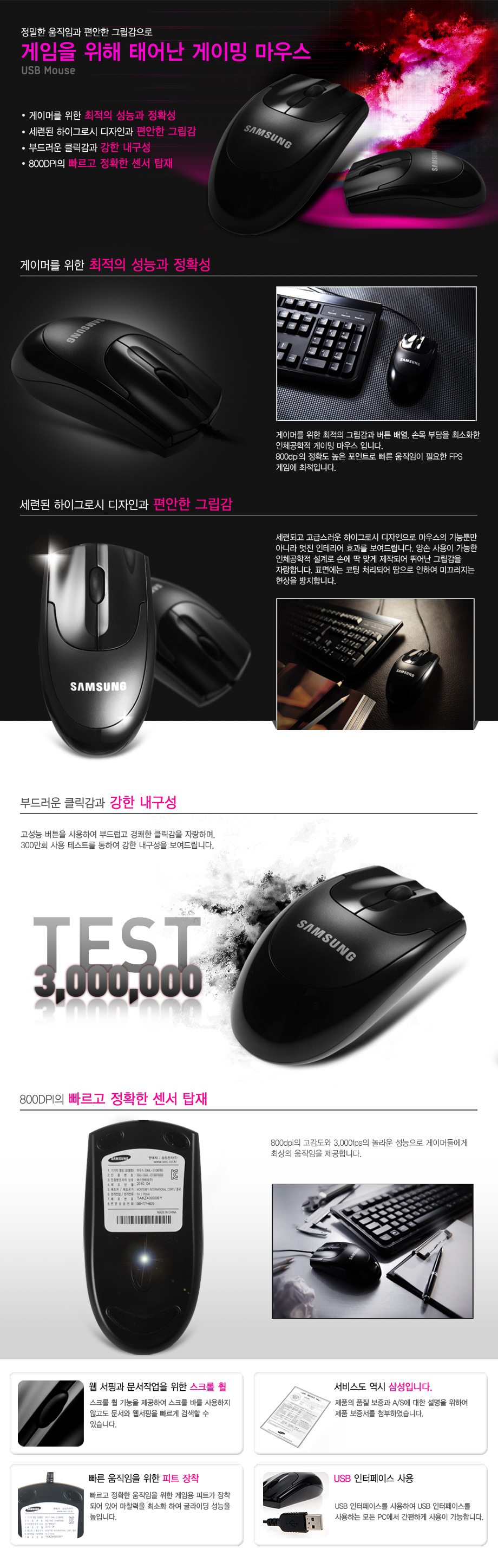 [삼성전자] SMH-3100UB 블랙 마우스(800dpi/USB)