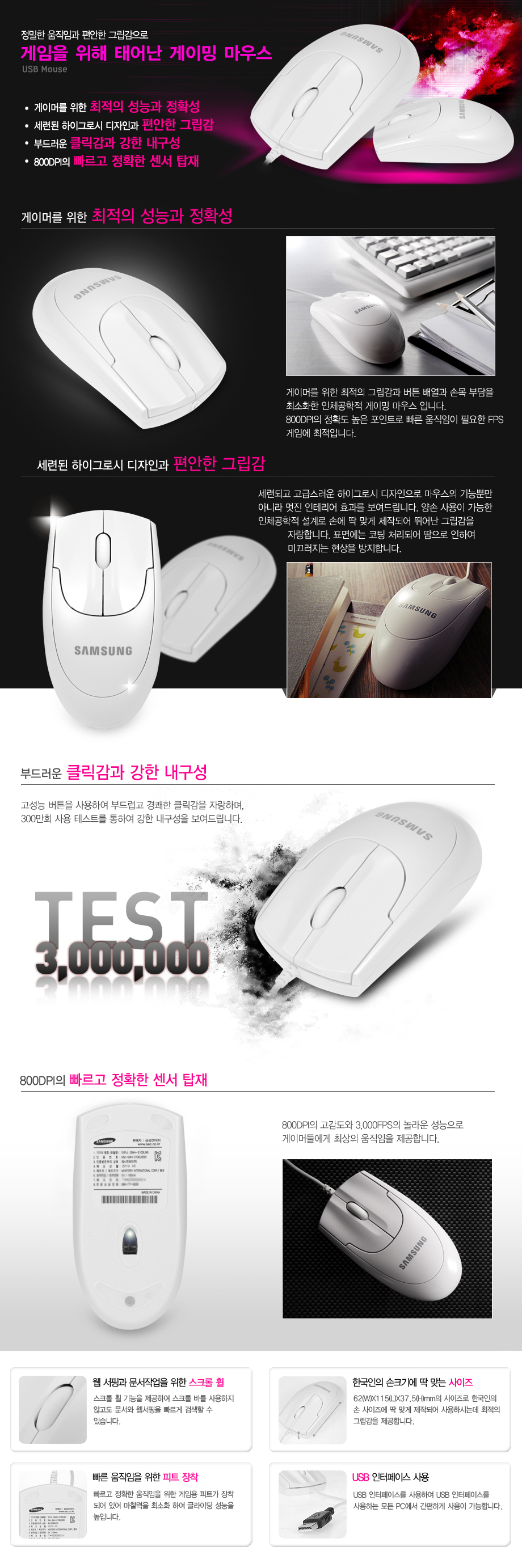 [삼성전자] SMH-3100UW 화이트 마우스(800dpi/USB)