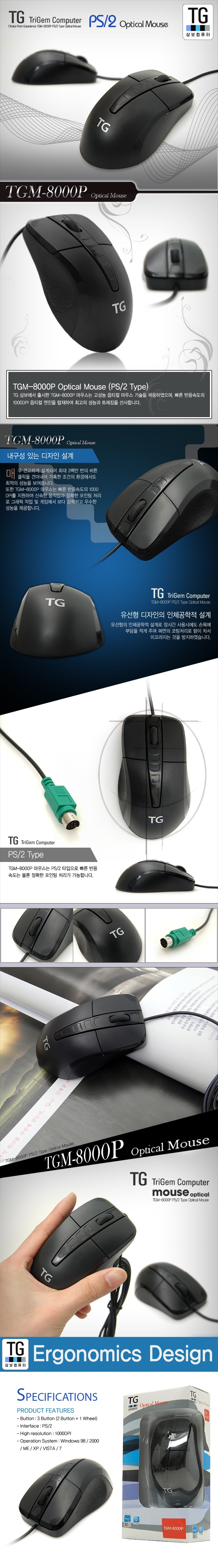 [TG삼보] TGM-8000P 블랙 마우스(1000dpi/PS2)