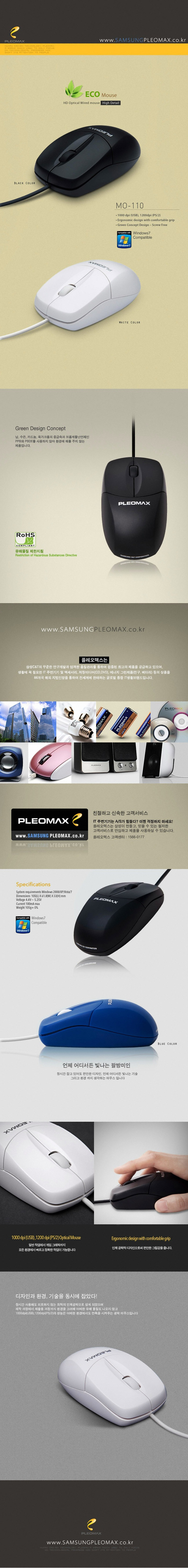 [삼성물산] PLEOMAX MO-110 블루 마우스(1000dpi/USB)