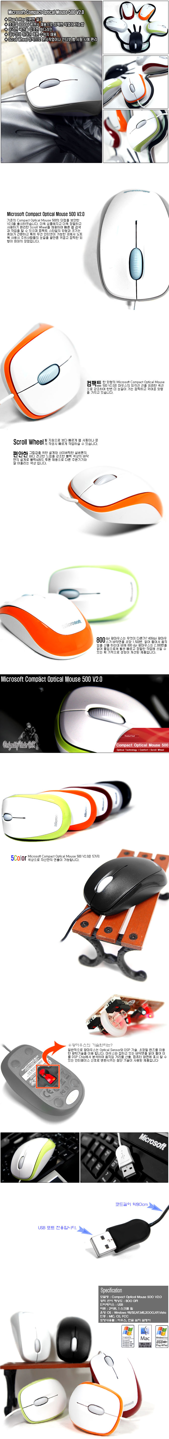 [마이크로소프트] 컴팩트 옵티컬 500 V2.0 블랙 마우스(800dpi/USB)