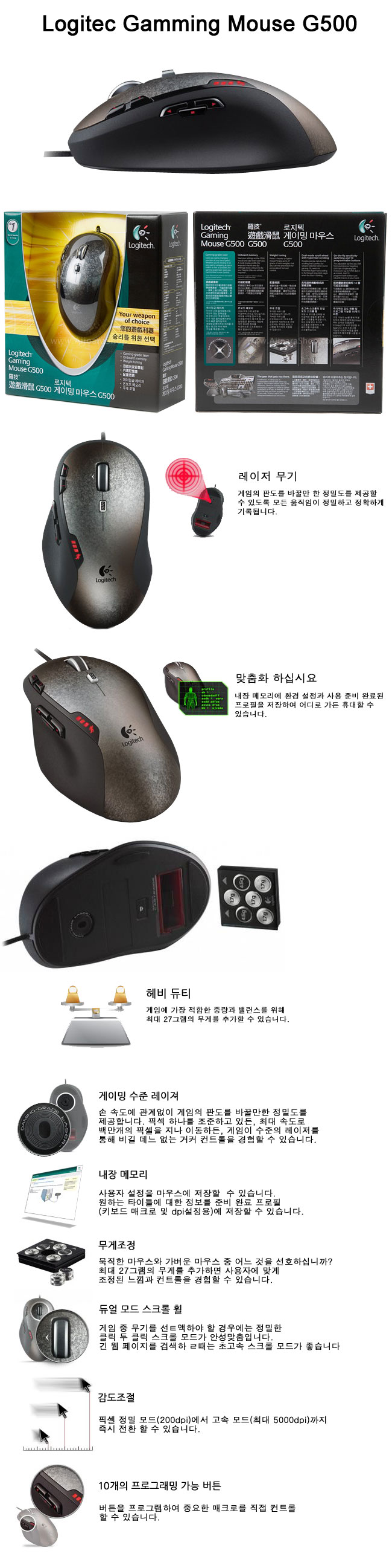 [로지텍] G500 레이저 게이밍 마우스(5700dpi/USB)