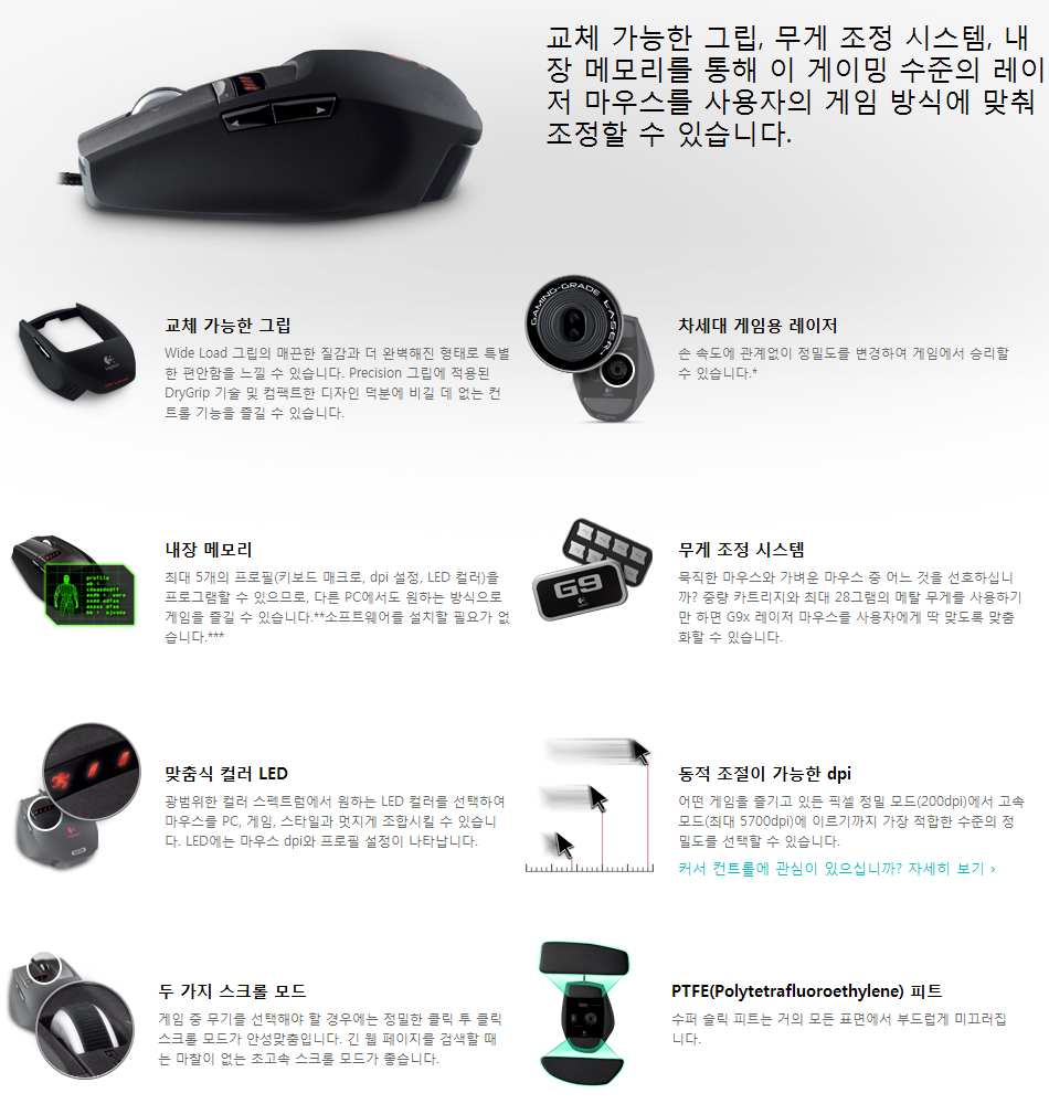 [로지텍] G9x 레이저 마우스(5000dpi/USB)