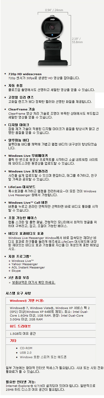 [마이크로소프트] LifeCam Cinema 화상카메라