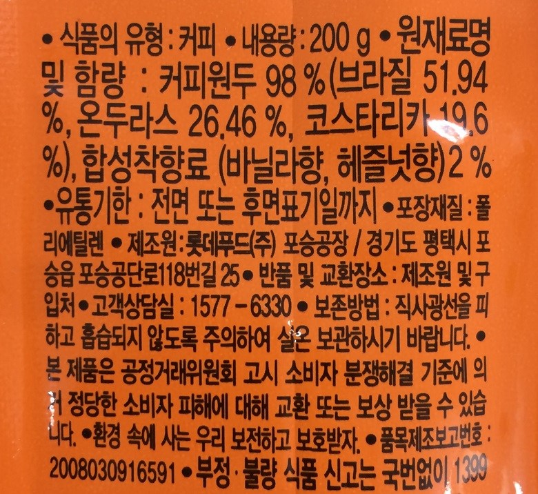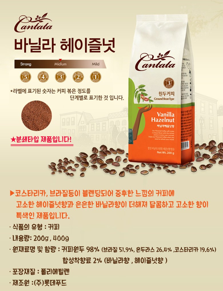 (할인/유통기한 25.01.16) 칸타타 바닐라 헤이즐넛(200g)분쇄