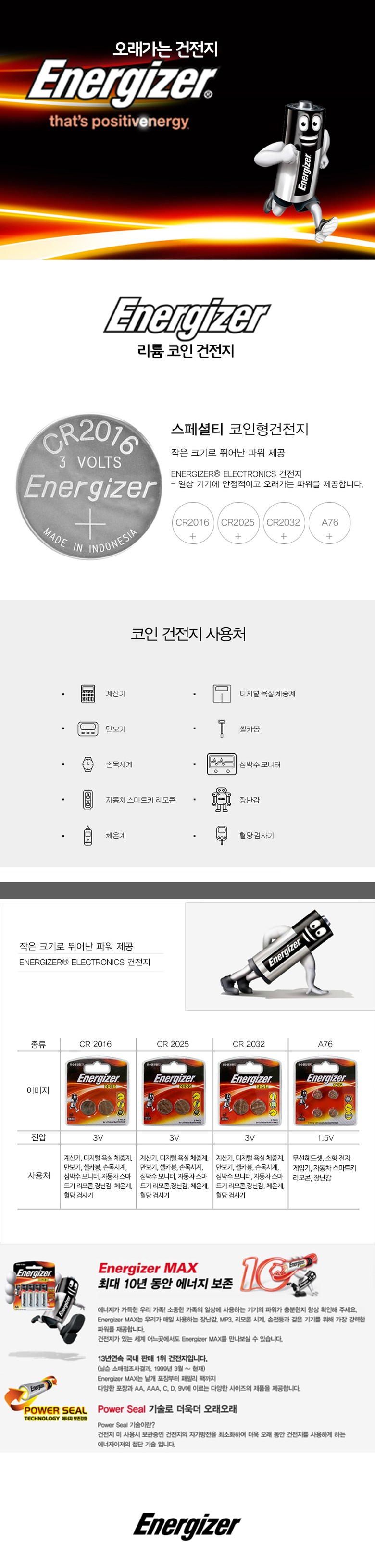 에너자이저 CR 2016 리튬코인 건전지 2개입