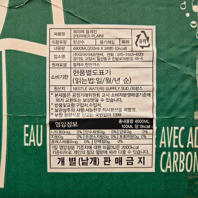 * 소비기한 표기 (라벨 옆면에 표기, 일/월/년 순)