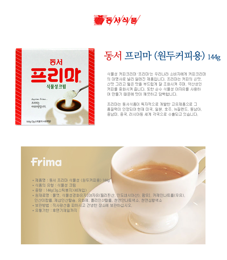 동서 프리마 스틱형 식물성 프림(원두커피용)